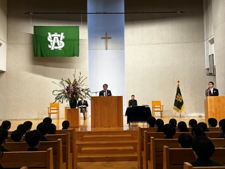 西南学院中学校修了式に際して、修了記念品を贈呈しました!
